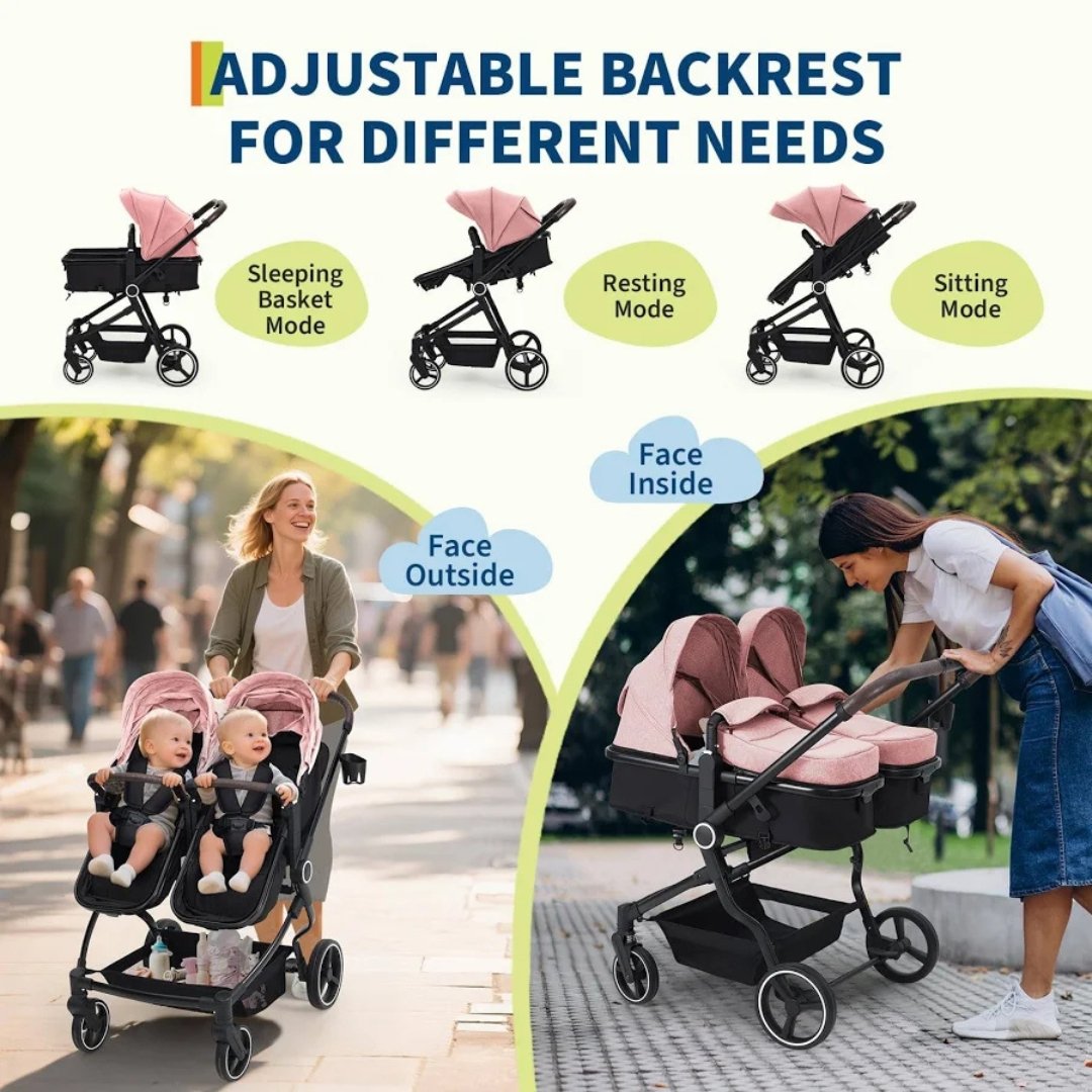 The Sunkonect Twin Baby Stroller is thoughtfully designed for parents of twins or siblings close in age who want comfort, safety, and convenience in one stylish stroller. Featuring dual padded seats and individual adjustable canopies, this stroller ensures both babies enjoy a cozy and protected ride. The soft pink and black color combination adds a modern and elegant look, making it perfect for daily outings, shopping trips, and family walks.